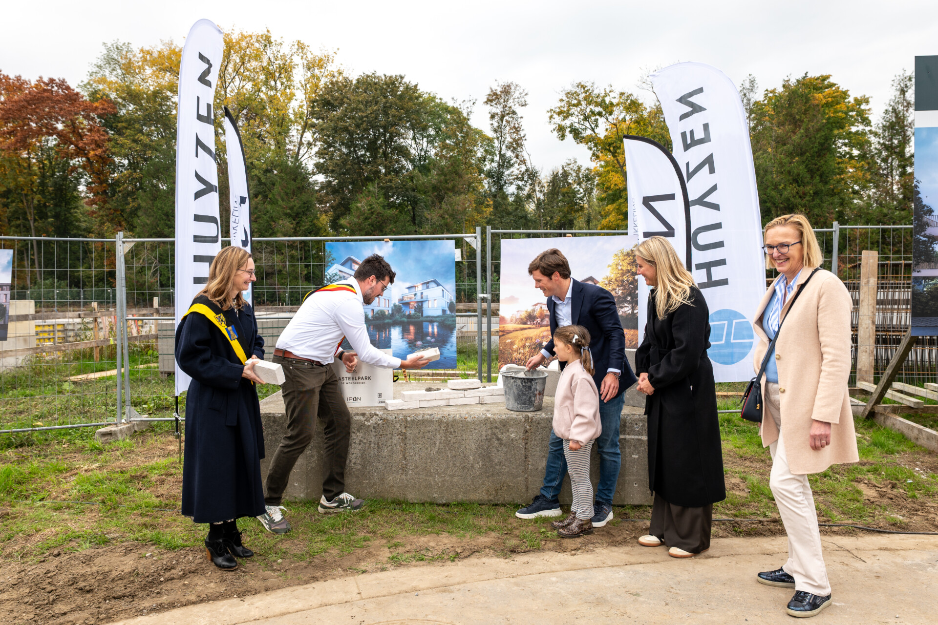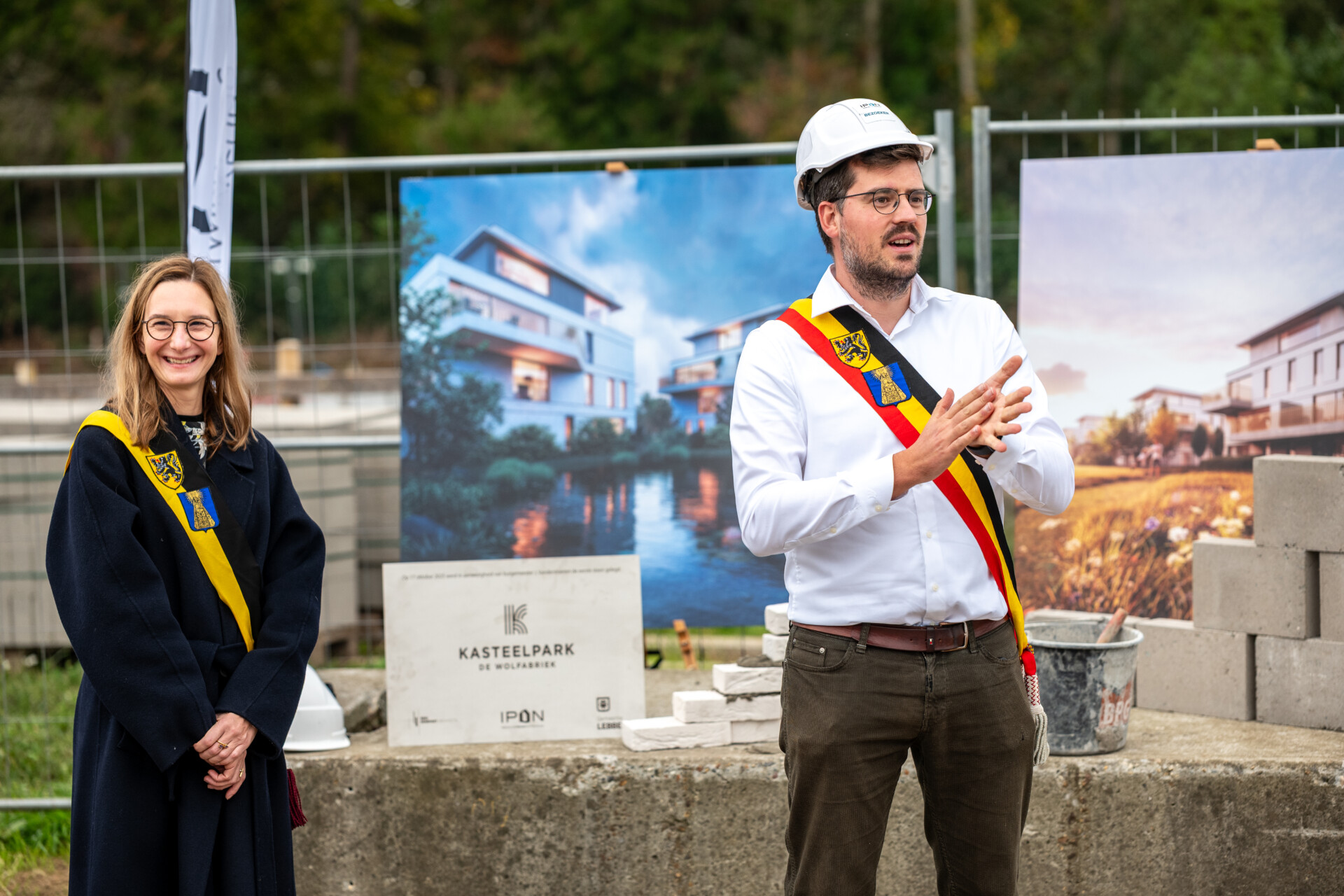 Op vrijdag 17 oktober 2025 mocht burgemeester Jan Vanderstraeten (CD&V-Vooruit) de eerste steen van Residentie Kasteelpark leggen. In aanwezigheid van zijn schepen, architect Reid Sennepart, NON.ENERGY – partner voor de geothermie – en verschillende bewoners, luidden we de start in van de werken aan deze nieuwe fase binnen project De Wolfabriek.