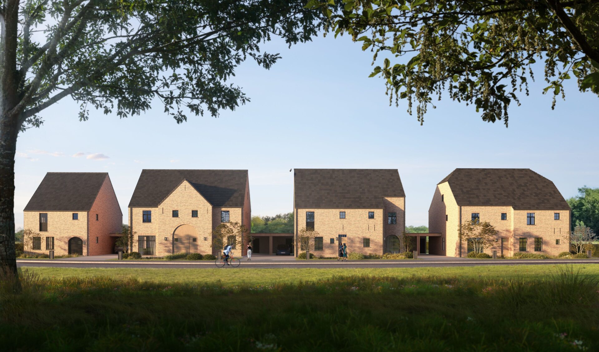 Alle woningen zullen worden verwarmd d.m.v. een individuele geothermische warmtepomp. De ruime woningen kunnen naar persoonlijke smaak afgewerkt worden. Ze zijn verschillend qua ontwerp en indeling, maar vormen samen een mooi architecturaal geheel. Alle woningen hebben op de eerste verdieping drie slaapkamers, met telkens een vaste trap naar de zolderverdieping die u desgewenst kan inrichten als bijkomende slaapkamers, hobbykamer,…