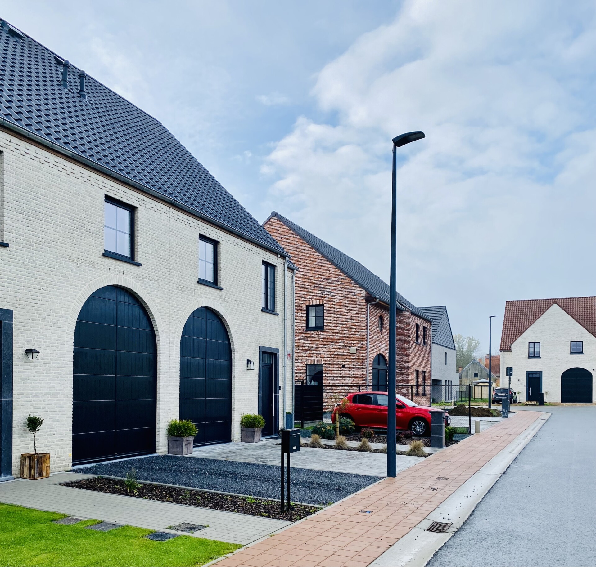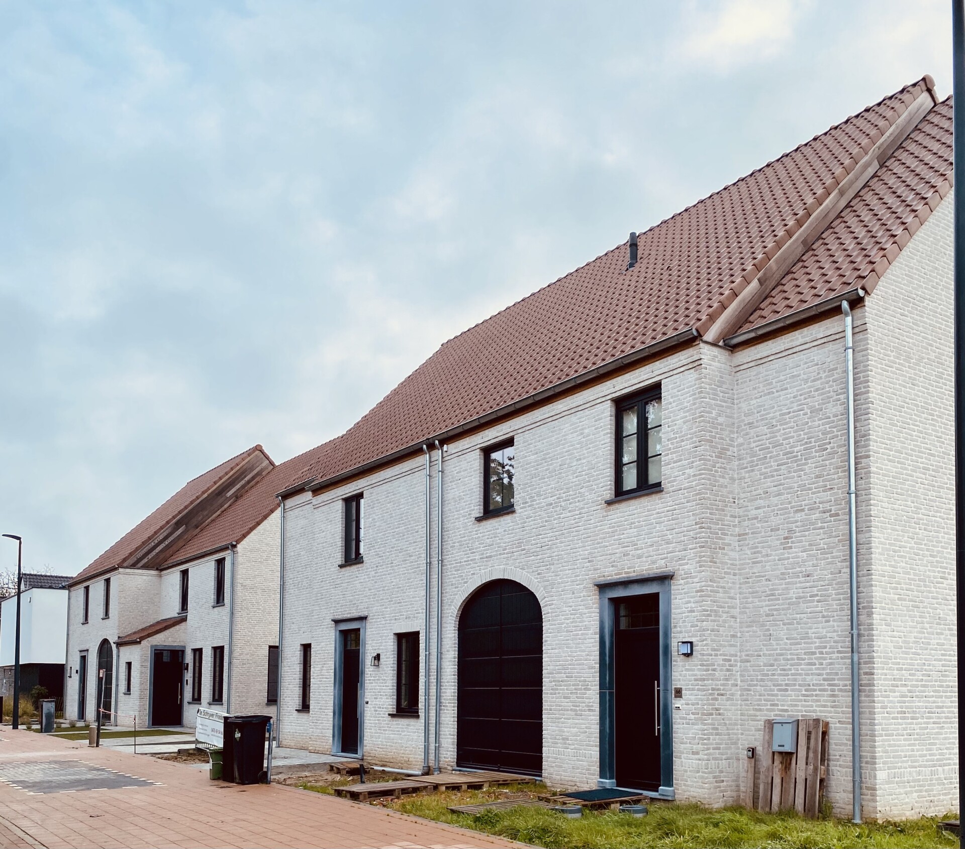 Aan de ingang van het project vinden we meteen een bos, dat het groene karakter van deze nieuwe wijk vormt. 12 halfopen woningen in verschillende stijlen werden hier door IPON NV ontwikkeld. Zowel ruime moderne woningen met accenten in hout als gezellige pastorijwoningen bieden hier een warme thuis.