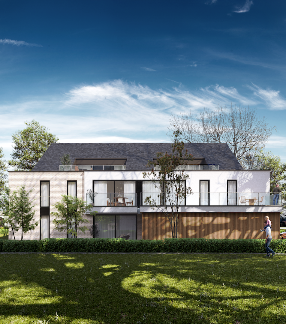 Het gebouw bestaat uit twee bouwlagen en een teruggetrokken dakverdieping en omvat ruime, volledig uitgeruste appartementen met private buitenruimte in de vorm van een terras of tuin. 8 gezinnen vinden hier een thuis in een ruim 2- of 3-slaapkamerappartement. Qua indeling werd gekozen voor een open grondplan, waarbij de keuken, living en terras in elkaars verlengde liggen. Zo wordt de buitenruimte een deel van leefruimte wanneer de grote ruiten die zorgen voor maximale lichtinval opengeschoven worden.
