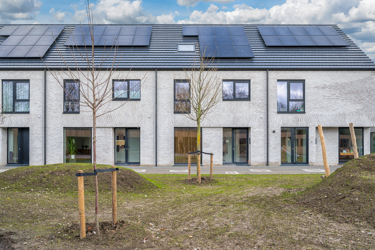 In Kontich, in de Antwerpse rand, ontwikkelden we een project in mede-eigendom van 15 woningen en 4 appartementen in een poortgebouw. De woongelegenheden werden georiënteerd rond een groen ingevuld, gedeeld binnengebied met een wadi maar ook speeltoestellen. 19 gezinnen vonden hier een energiezuinige woning in de rand rond Antwerpen.