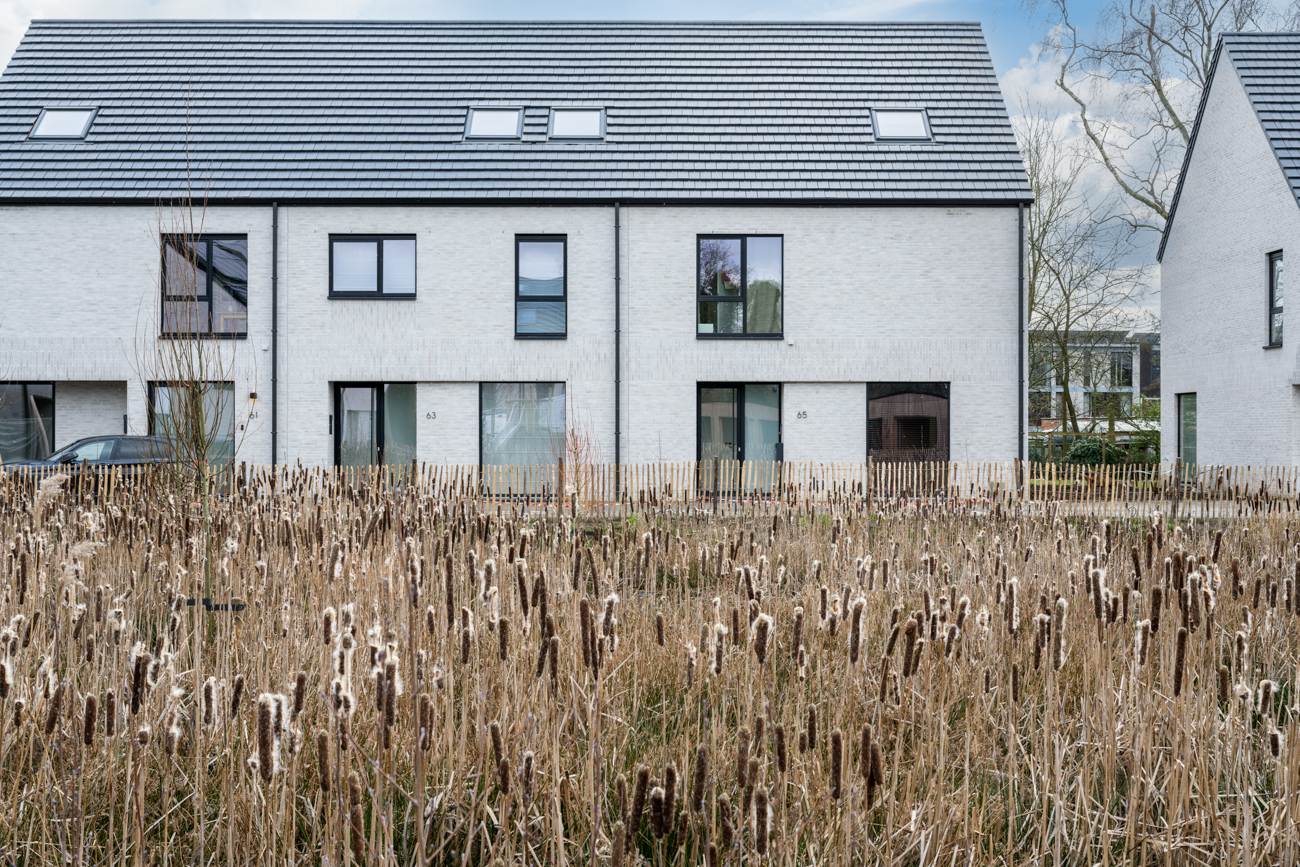 De keuze voor een lichte gevelsteen en simpele structuren, in combinatie met het groene binnengebied, benadrukken de aanwezige open ruimte. Het wordt een plaats om samen te komen, om thuis te komen. Tegelijk vervult de groenzone een belangrijke rol als waterbuffer door middel van de wadi.